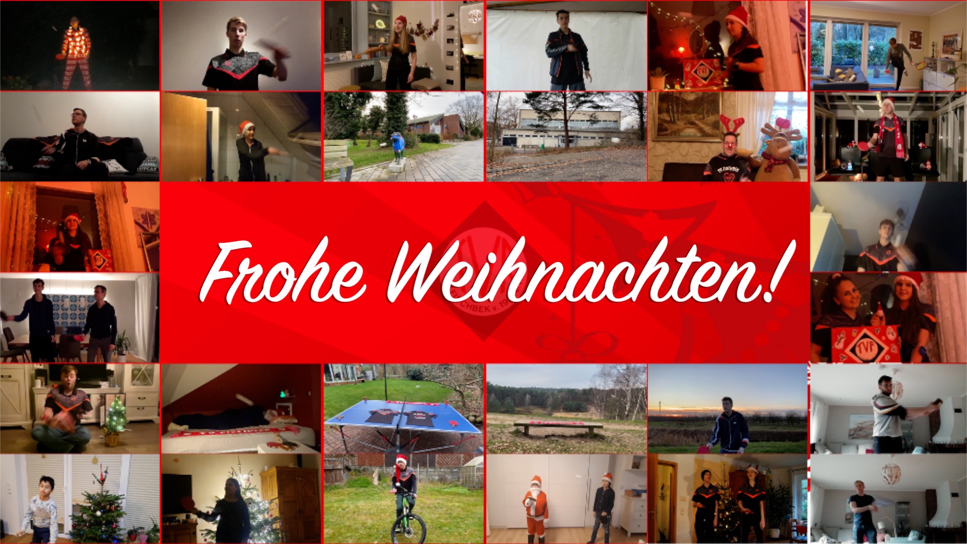 Was haben der Weihnachtsmann, ein überdimensionales Plüschrentier und ein Nudelholz gemeinsam? Richtig - sie alle sind Teil unseres grandiosen Weihnachtsvideos! Robin und Niclas hatten die tolle Idee, einen Aufruf in der Abteilung zu starten, dass ein jeder von uns ein kleines Video aufnimmt, bei dem ein Tischtennisball in das Bild fliegt und weitergeschossen wird. Verrückte Verkleidungen und Requisiten waren dabei ausdrücklich erlaubt und das zusammengeschnittene Ergebnis kann sich wirklich sehen lassen. Da fliegt der Ball aus dem Dachfenster, durch die Fischbeker Heide, am schlafenden Weihnachtsmann vorbei und wird mit den kuriosesten Gegenständen vorangetrieben. Wer den Hollywood-verdächtigen Streifen mit eigenen Augen sehen will, kann sich gern bei mir melden.