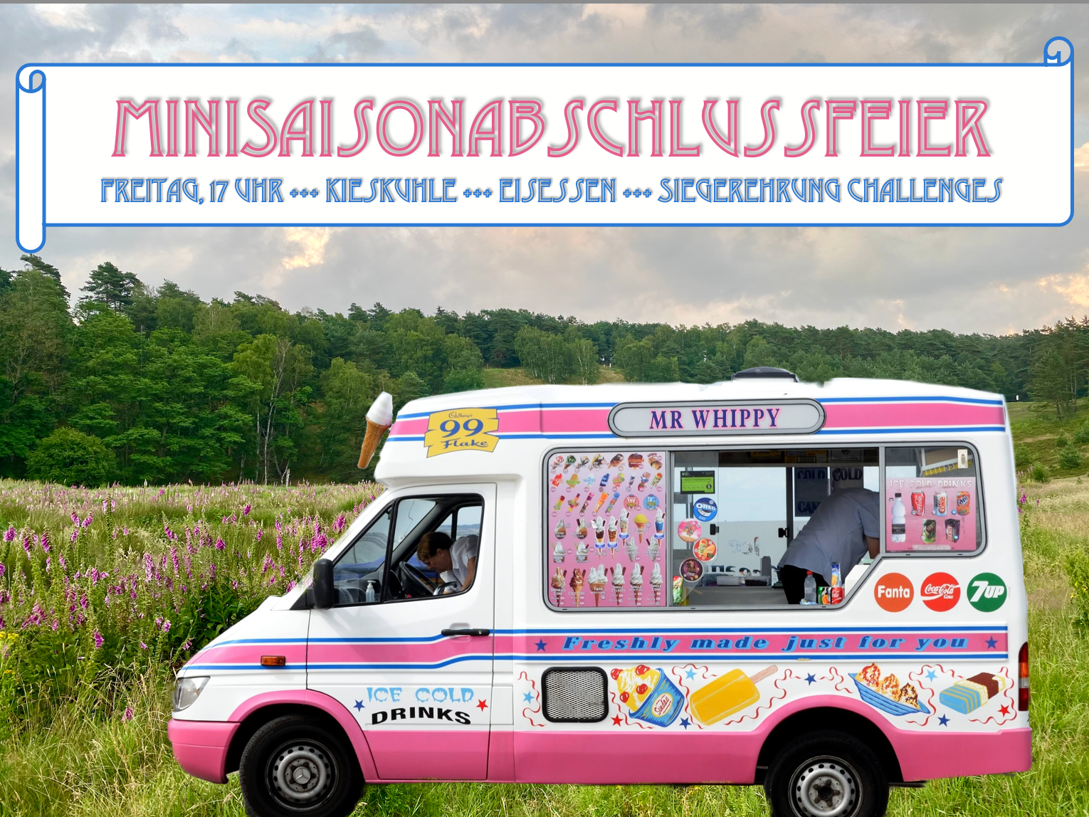 Woche 8: Da es inzwischen wieder erlaubt ist, treffen wir uns auf ein Eis in der Kieskuhle und führen die Siegerehrung durch.