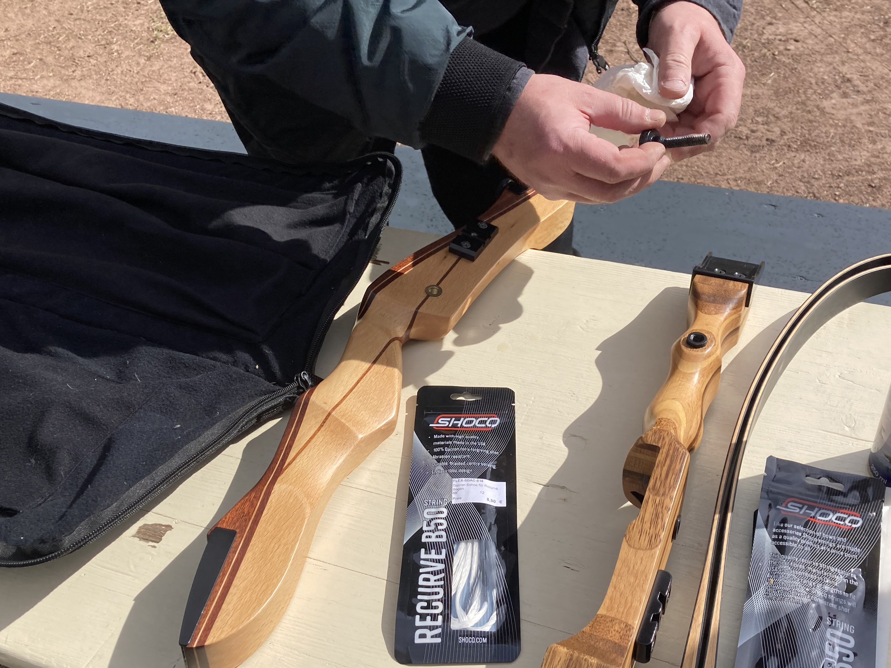 Zudem wurde das Netz geprüft, die Scheibenständer repariert, die Bögen kontrolliert und die Sehnen gewachst, ...