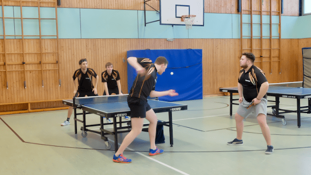 Damit kommen wir zu den Halbfinals und traditionell zu den emotionalen Höhepunkten unserer Vereinsmeisterschaften. Auch dieses Mal stelle sich wieder die Frage, ob Hendrik seinen Halbfinalfluch würde besiegen können. Er musste gegen Morris antreten und ich habe mir sagen lassen, dass sich ein stark taktisch geprägtes Spiel ergeben hat, was dennoch – wie wir es gewohnt sind – erst nach vier umkämpften Sätzen entschieden wurde. Letztlich konnte sich Morris knapp durchsetzen und zog ins Finale ein, in dem Titelverteidiger Robin bereits wartete. Er hatte in der Neuauflage des letztjährigen Finals Philipp keine Chance gelassen und deutlich gewonnen. Solche Topspin Serien würde wohl jeder von uns gerne spielen können.
